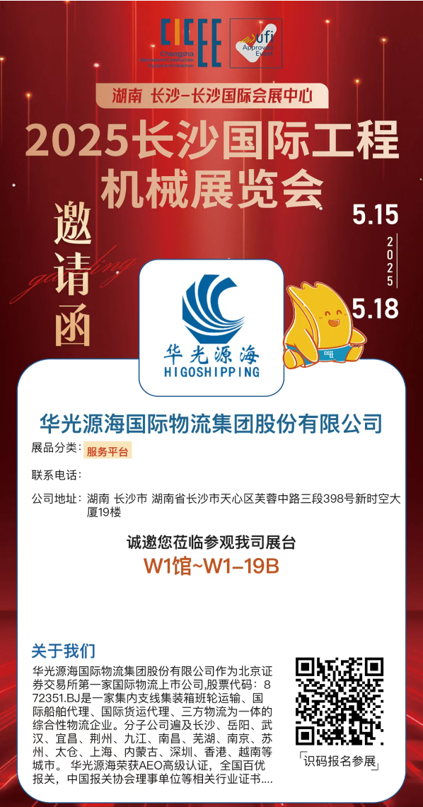 做为全球三大工程机械财产集聚地之一,2025CICEE将汇聚35家全球工程机械制制商50强企业,展区划分为工程机械、应急配备、矿山配备、农业机械四大从题板块,笼盖23大类、2万余台(套)展品。此中,1500项全球首发手艺及产物将集中表态,涵盖氢能动力农、AI无人矿山配备、5G智能应急系统等前沿范畴。展会更特设“世界初创+世界首台/套”新产新手艺专区,以硬核科技注释“高端化、智能化、绿色化”转型标杆。华光源海做为证券买卖所第一家国际物流上市公司,专注于国际物风行业近二十年,供给包罗海运整箱、杂项物品、船埠办事、报关报检、项目物流、海铁联运、空运出口等一坐式办事 。我们诚挚邀请您莅临华光源海展位【W1-19B】,我们等候取更多有识之士成立合做关系,配合摸索物风行业的立异之。同时,我们也将分享华光源海对将来物流市场趋向的洞察取瞻望。