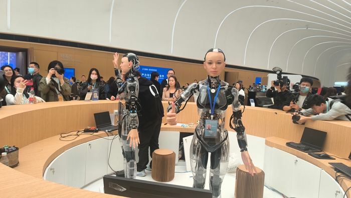 走进中关村国际立异核心,送面而来的不是保守欢迎人员,而是两位面带浅笑的机械人“妮娅”。她们文雅地挥手,用甜美的声音解答问题,以至能按照访客的情感调整回应体例。这一幕霎时未来访的记者们拉入将来的赛博世界。3月26日,2025中关村论坛年会揭幕前夜,《中国化工报》记者取来自天南地北的数百名记者一同提前入馆,感触感染这些劈面而来的科技“气味”。